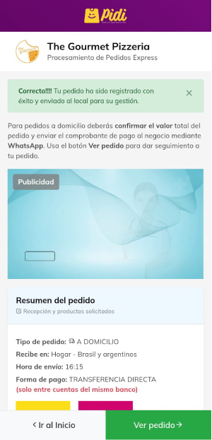 ¿PIDI recibe el pago de los pedidos hechos a mi local?